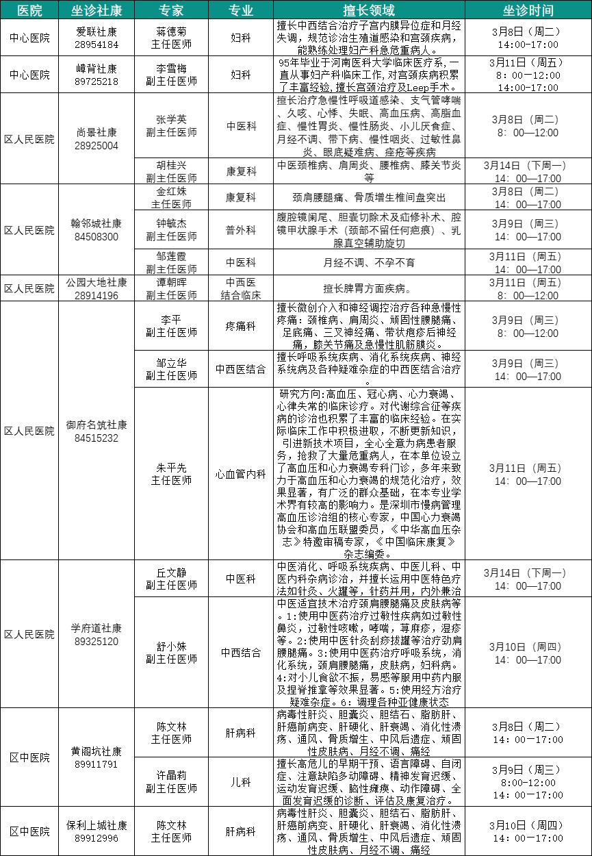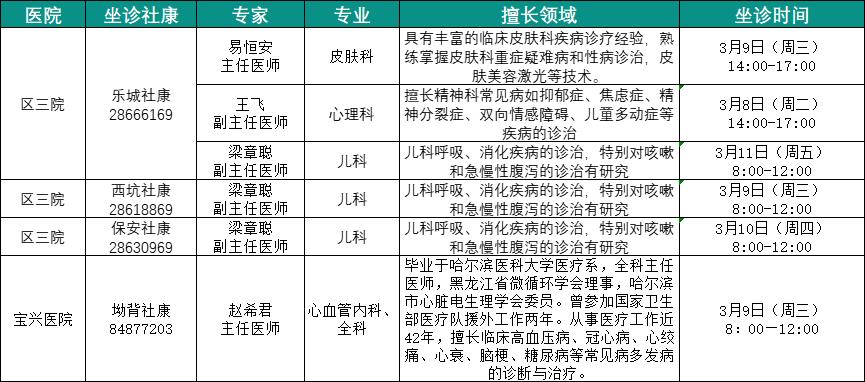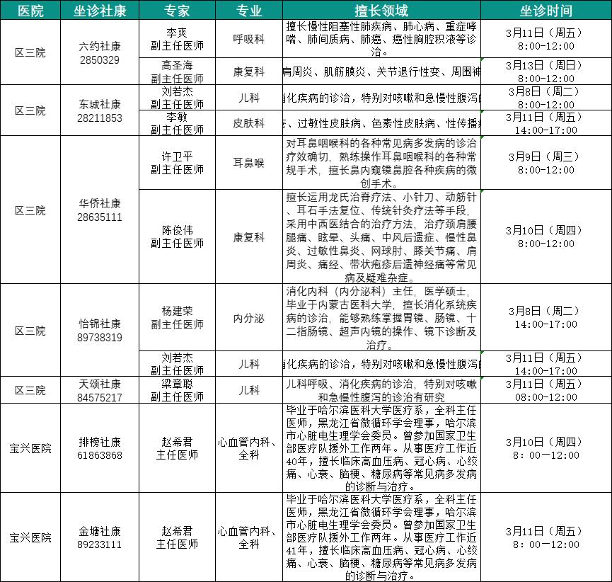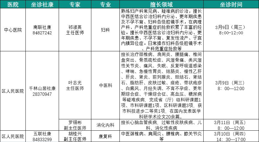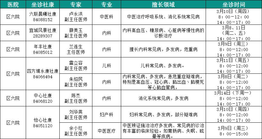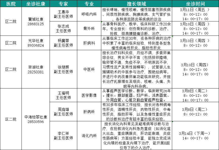 社康坐诊专家