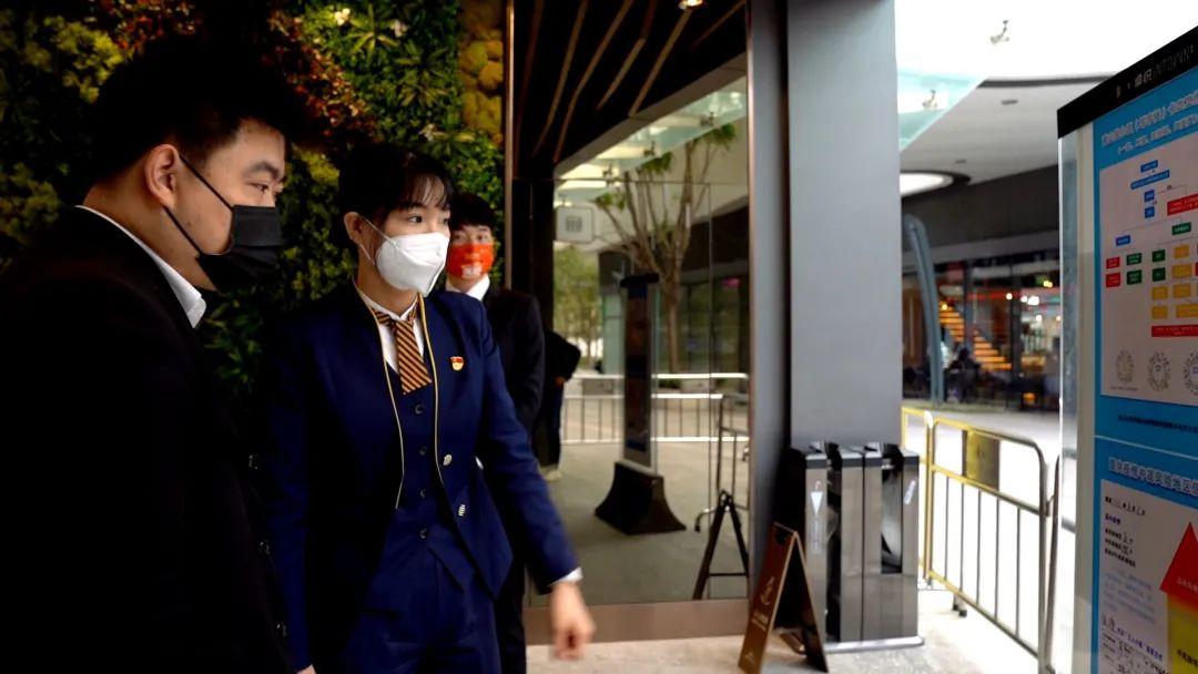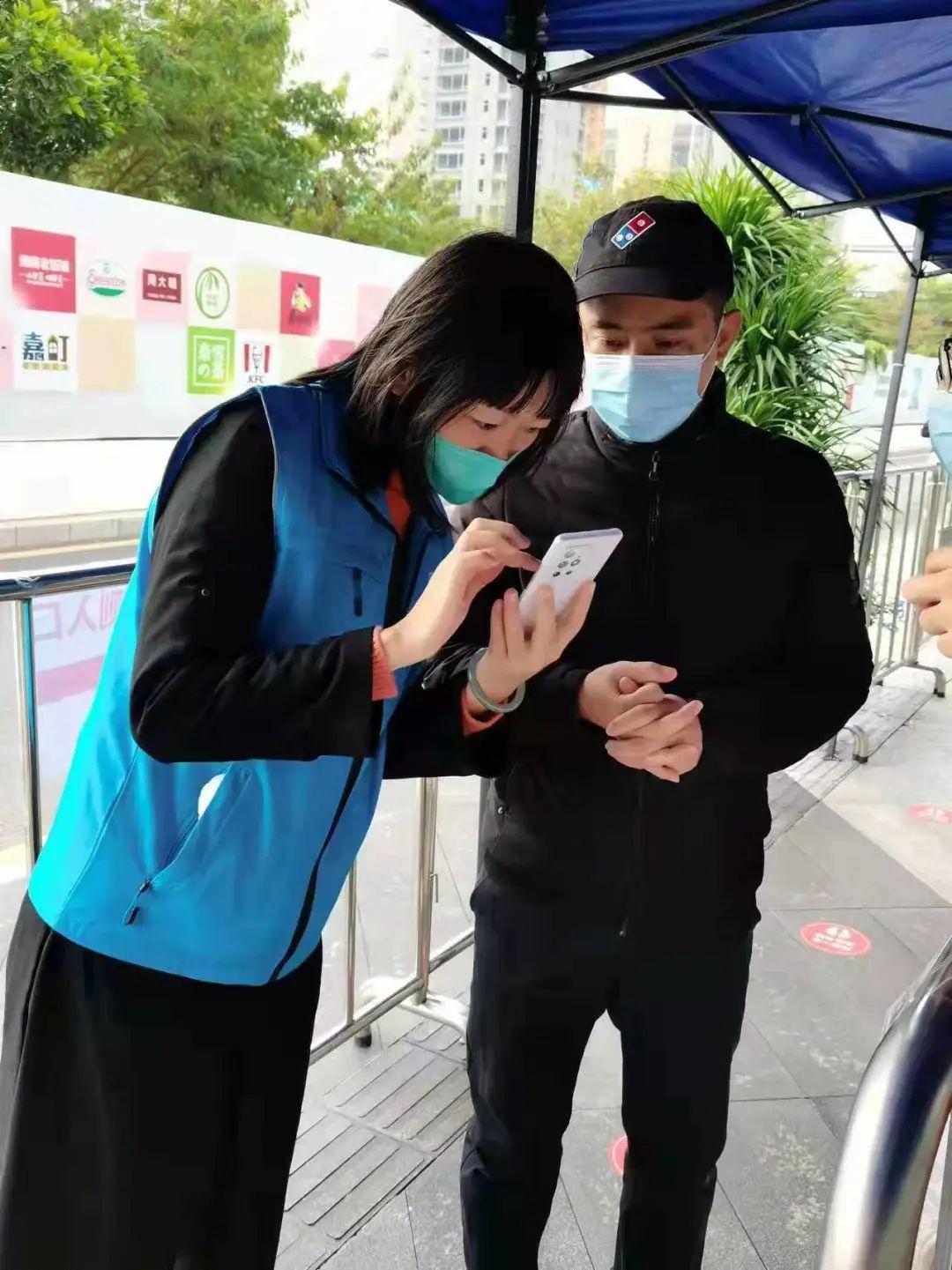 在前海桂湾片区,前海服务集团党员阳佩佩自春节后即自愿报名成为一名防疫网格员,并于2月28日起开始负责前海卓越金融中心及2号冷站的网格联络。前者每日访客人数不小,公司写字楼与商铺混杂,流动性强。电话沟通、现场走访、整改跟进,阳佩佩把任何防控细节都看在眼里,发现电梯配备的免洗洗手液没了,电梯里的按键缺乏保护膜,都及时提醒整改。