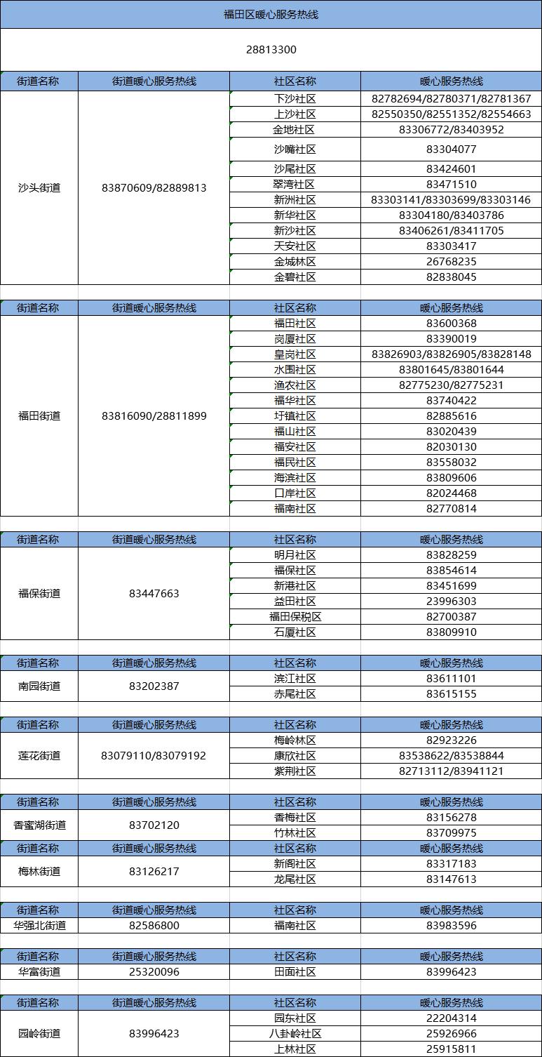 目前,福田区已开通“1+10+92”暖心服务热线,即1个区级、10个街道级和92个社区级的热线工作人员实行三班倒,全天候听取和处置封控管控区居民的问题和建议。