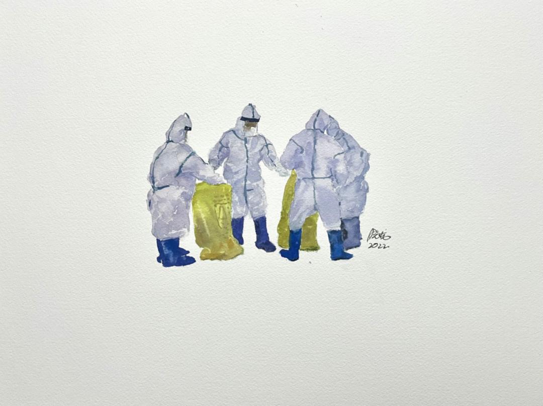 陈跃刚 《抗疫—争分夺秒》 23x31cm 纸本水彩 2022年