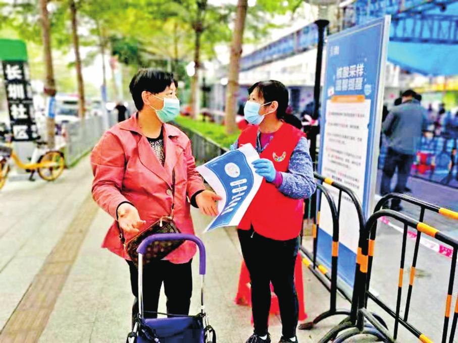 疫情发生后,陈傍兴参与到核酸检测、疫苗接种等志愿服务工作中。她是义工队伍的骨干,新义工参加防控服务时,她都会给新义工培训,并叮嘱新义工要保护好自己,带领新义工上岗等。