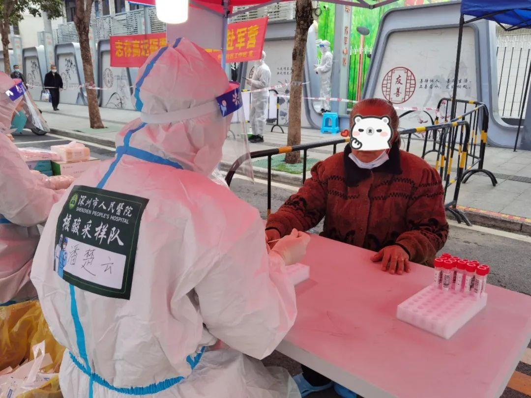 今年春节期间,深圳新一轮疫情暴发,潘楚云再次披甲上阵。不过巧合的是,2月1日,深圳市人民医院接到市卫健委的紧急通知,要求医院调派100人紧急支援宝安区福永街道的福永、怀德、聚福、福围、兴围5个社区进行核酸采样,其中的怀德社区正是潘楚云的娘家。作为这支支援队的负责人,在年初二回娘家的日子,她以一种特殊的方式回到了娘家,并亲自为家人做了核酸检测。