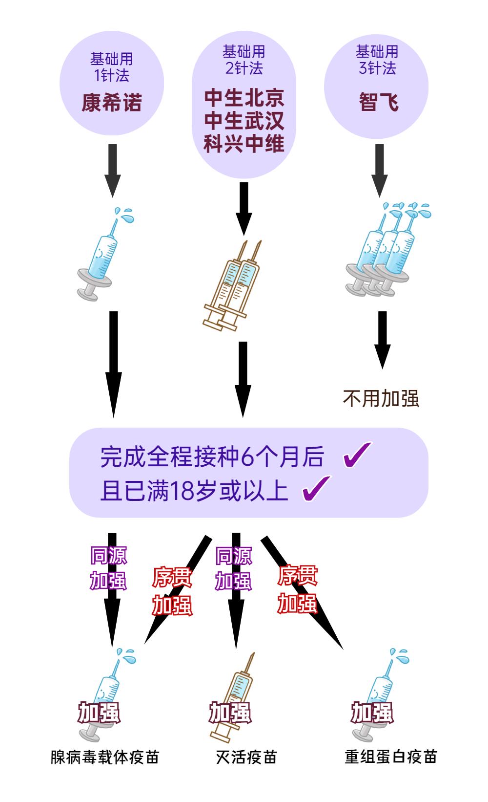他提到,此前,凡全程接种国药中生北京公司、武汉公司、北京科兴公司灭活疫苗,以及天津康希诺公司的腺病毒载体疫苗满6个月的18岁以上目标人群,可以进行一剂次同源加强免疫,也就是用原来的疫苗进行加强。