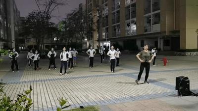 ▲坪山高级中学学子与老师共跳减压广场舞