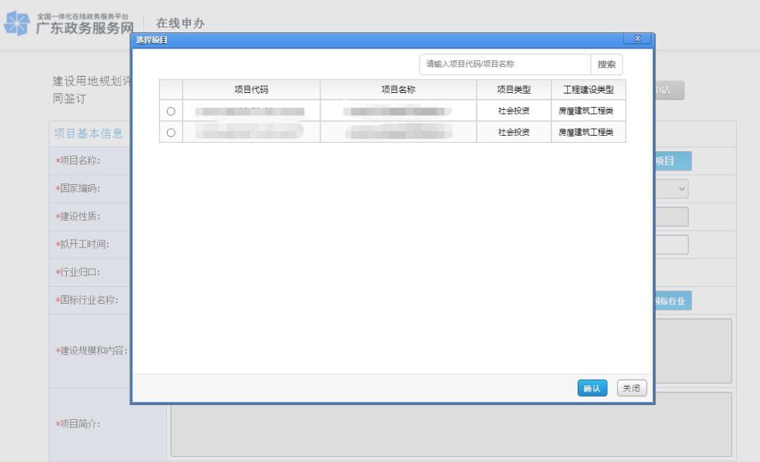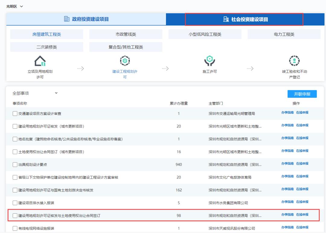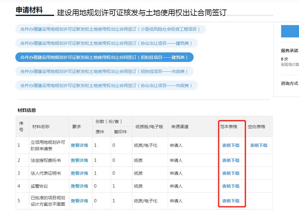 2. 搜索“建设用地规划许可证核发与土地使用权出让合同签订”事项: