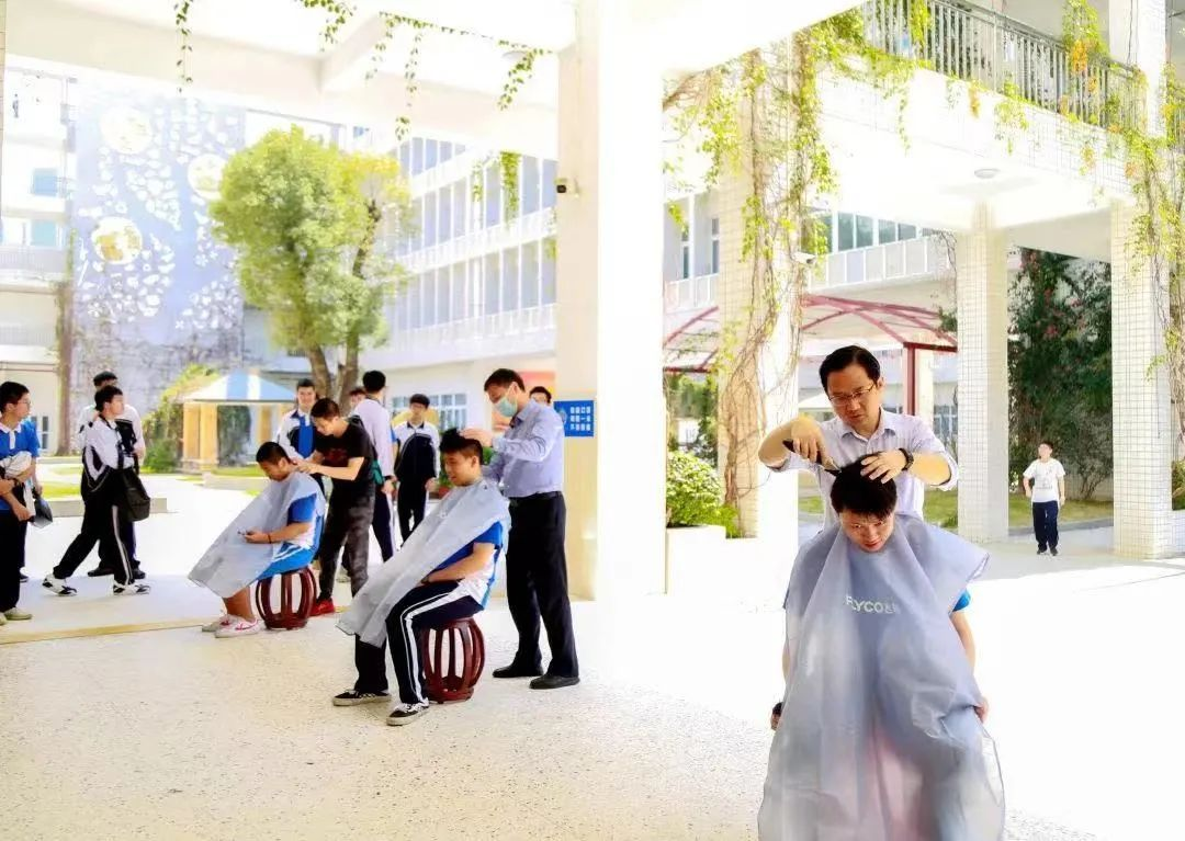 此外,高三师生住校奋战之时,西乡中学蔡景贤校长化身为“Tony老师”,带领学校行政人员为高三师生解决“头”等大事。崛起实验中学高三地理学科李洁云老师也化身最美发型师小姐姐,为同学们精心修剪“二月二”专属龙抬头发型。