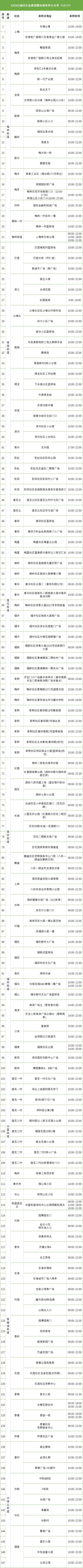 为方便居民进行核酸检测,3月9日,福田区设置147个免费的核酸检测采样点,为居民提供服务。