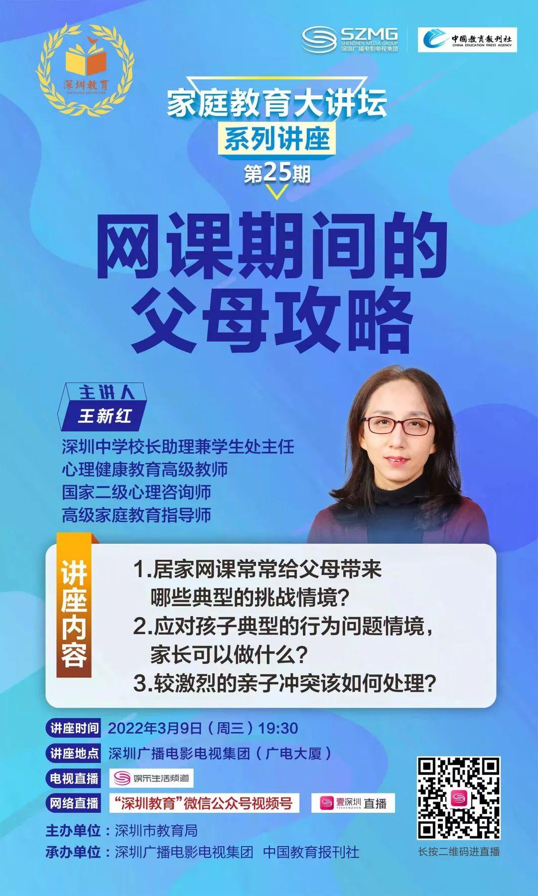王新红:深圳中学校长助理兼学生处主任,心理健康教育高级教师,国家二级心理咨询师,高级家庭教育指导师