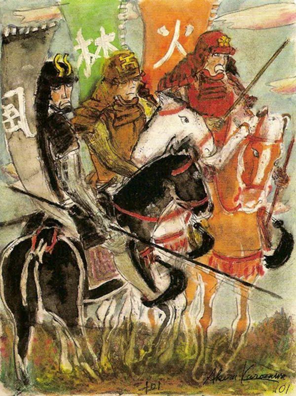 黑泽明正式大量绘制分镜头脚本是从《影子武士》开始,这些草图笔触细腻、颜色丰满、人物栩栩如生,已经超越分镜头草图本身的意义。