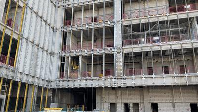 同时,整个项目使用BIM(建筑信息模型)技术,利用可视化的特点,提前对场地进行模拟优化和施工机械、材料堆场、人车分流等方面管理,并且进行虚拟建造为现场管理提供参考。诸多智慧技术的应用,都使得工程建造更环保、更安全。