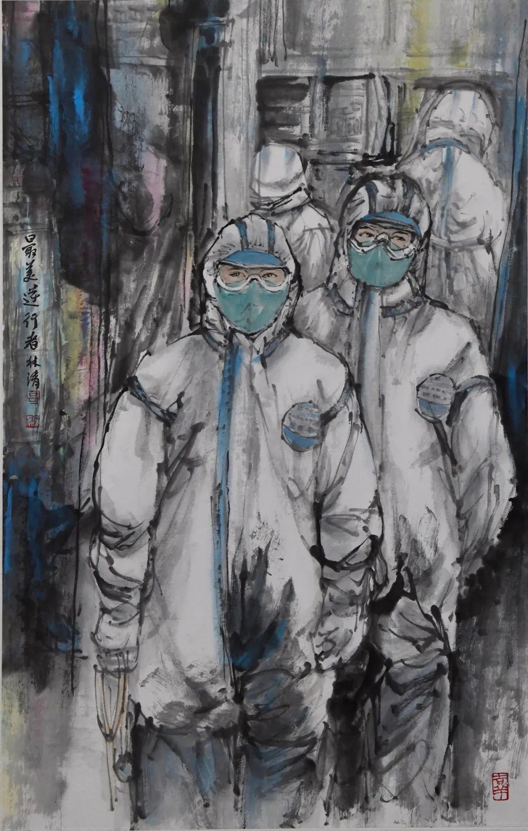 《最美逆行者》/ 吕琳清 / 96cm×60cm / 国画 / 2021年
