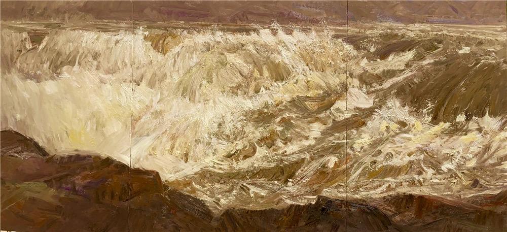 庆祝中国共产党成立100周年范迪安作品《奔流到海》,180×380cm,油画,2021年