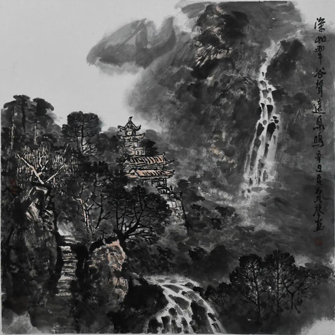 《深山翠谷·声远呜泉》/ 贺琴 / 69cm×69cm / 国画 / 2021年