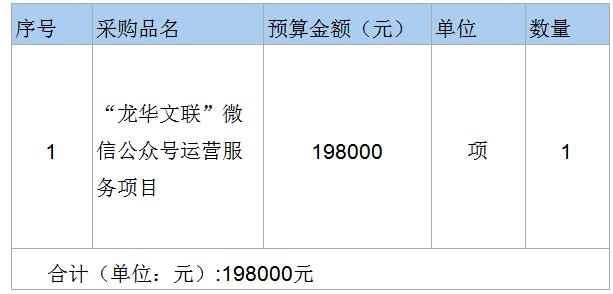 为进一步规范“龙华文联”公众号的运营管理,做好内容推送工作,以创新、文艺惠民的方式展现我区文化艺术的深厚底蕴,现通过网上公开征集优秀运营服务机构承接此项目,具体需求如下: