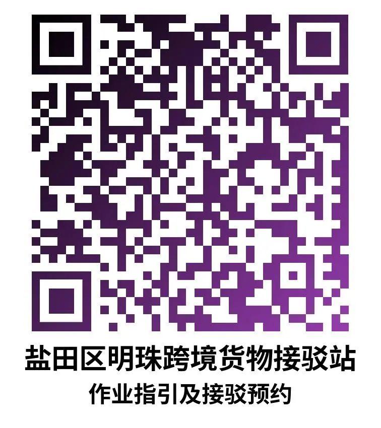 一、跨境车辆、内地车辆需提前预约。跨境车辆与内地车辆实行“一对一”转运,跨境车辆与内地车辆需提前进行沟通确定转运时间,跨境车辆在跨境运输作业前24小时在“跨境安系统”上申报预约;内地车辆在运输作业前24小时在“盐田区明珠跨境货物综合接驳站预约系统”二维码上申报预约。
