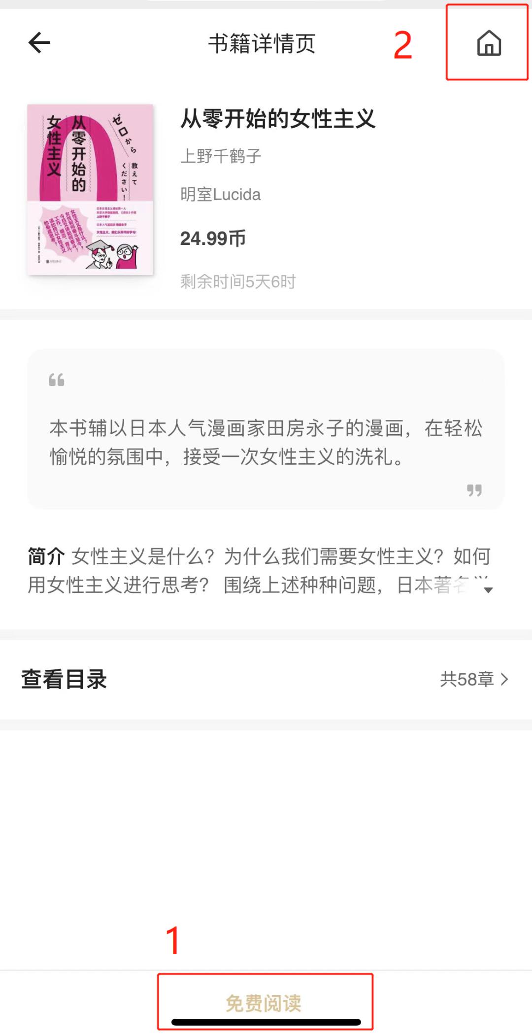 扫描书单中的二维码后,在书籍详情页下方选择“免费阅读”即可开启阅读之旅!通过右上角标志回到书城主页,即可搜索并免费阅读更多图书。