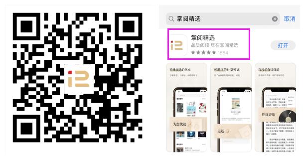 首先,扫描下方二维码根据提示下载应用并安装,也可直接到应用商店搜索“掌阅精选”下载安装;