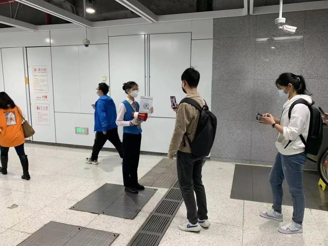 “我们在全线网各地铁站点张贴了‘场所码’,乘客进入地铁车站,需提前拿出手机扫描‘场所码’,向工作人员出示48小时内核酸检测阴性证明或24小时内的核酸采样记录,方能进站乘车。”