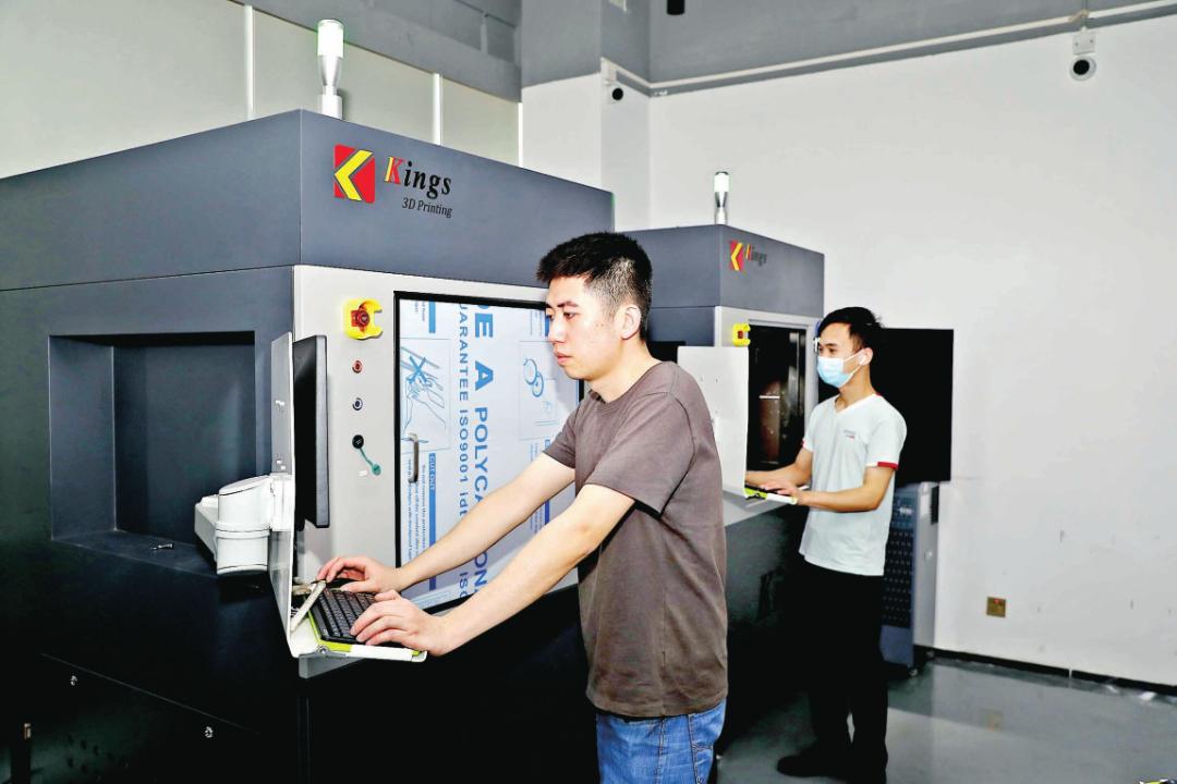 深圳市金石三维打印科技有限公司工人正在测试设备。