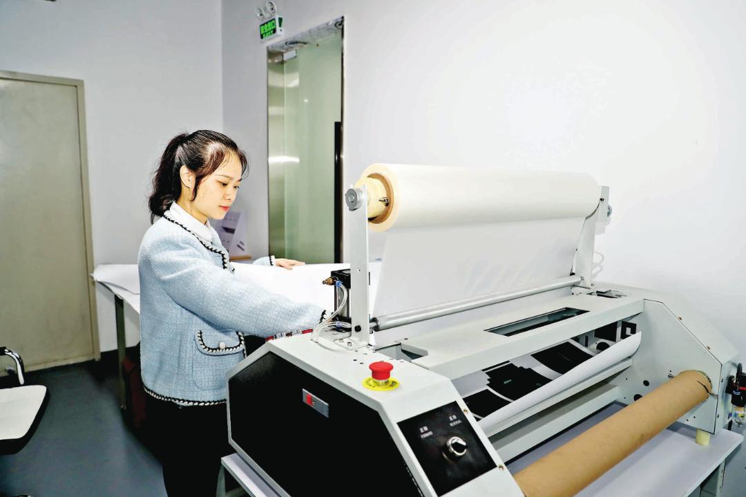 深圳市云集互联生态科技有限公司员工在为图稿覆膜。
