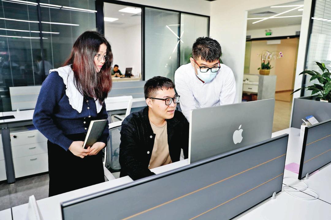 在深圳市云集互联生态科技有限公司(以下简称“云集互联”),现场看到,有的员工正坐在电脑前埋头专注设计,也有员工三五成群围在一起共同探讨方案。这是一家致力于为企业和个人用户提供文创产品、包装产品设计和供应的技术服务型互联网企业。