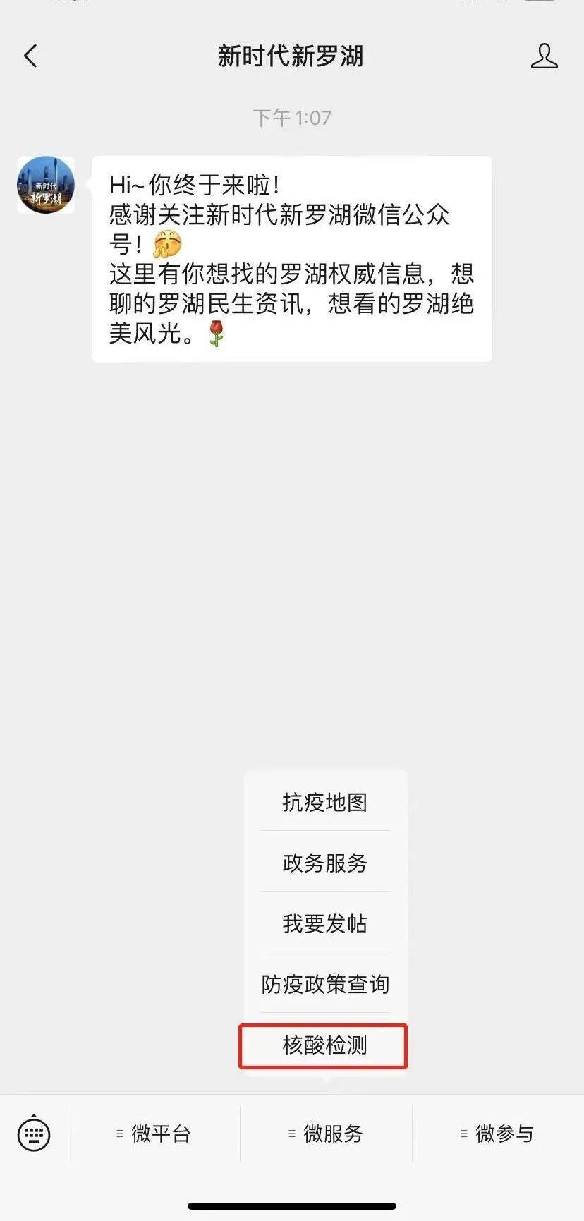 ② 点击菜单栏中的【微服务】-【核酸检测】,即可根据自身需求选择核酸采样点。