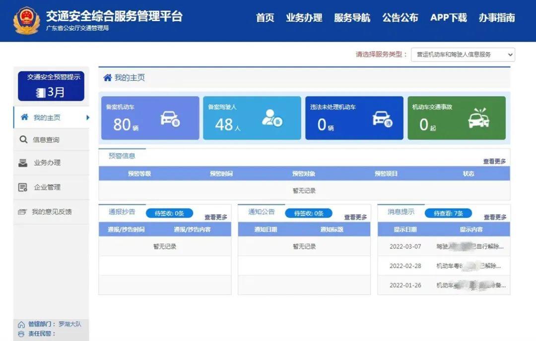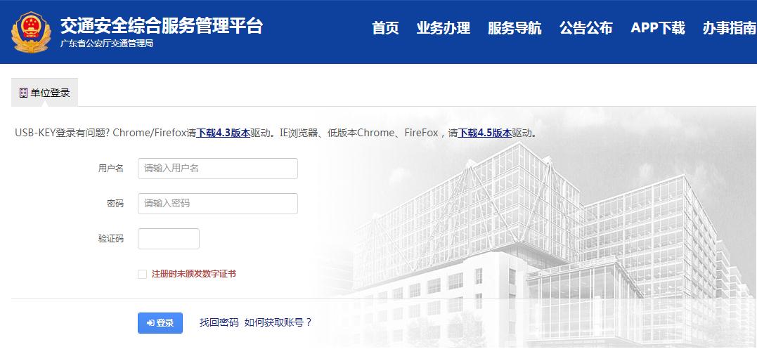 电脑端:登录广东省交通安全综合服务平台(单位用户、个人用户均适用)。