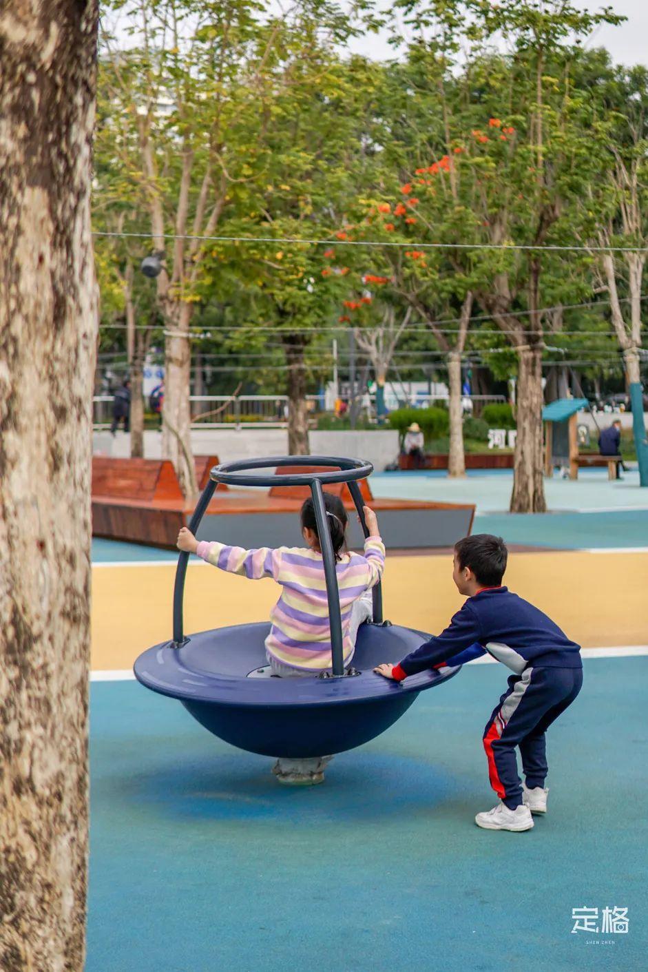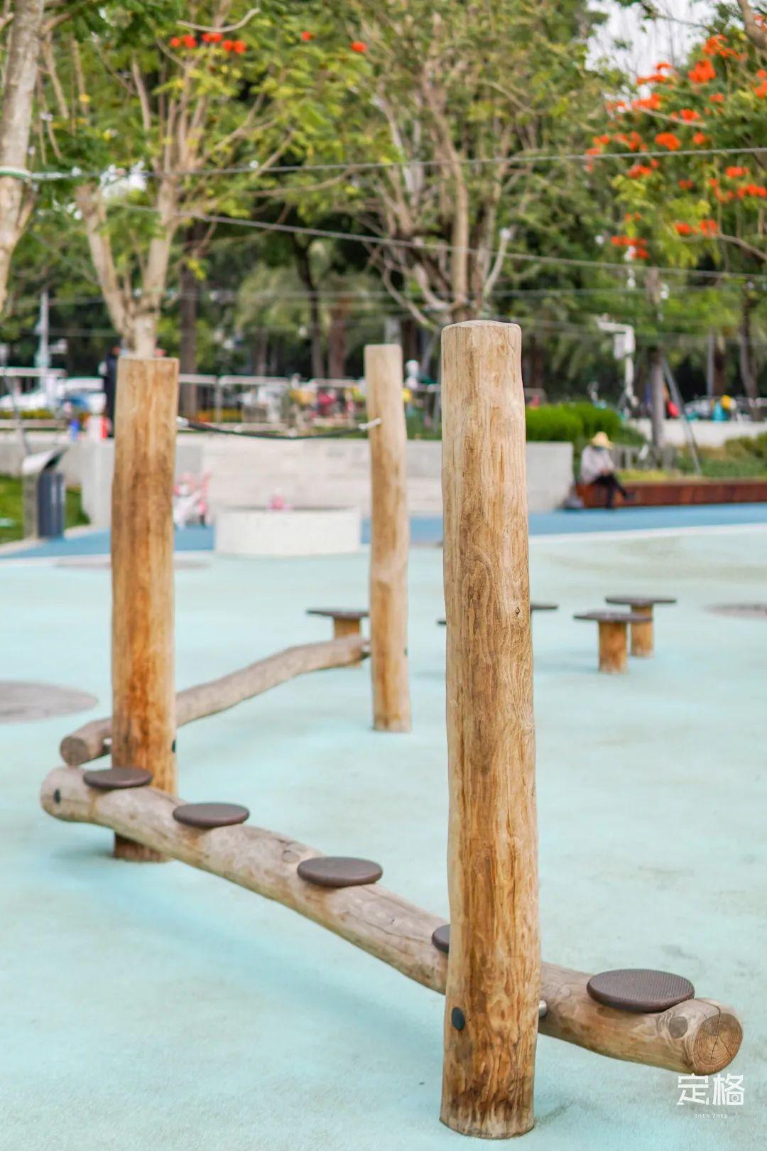 中心河提升工程一期的出海口一侧,还有一片运动空间,一大早就有很多小朋友在这边玩耍。公园内的游玩设施种类也非常多,平衡木、摇摇椅、攀爬网...宛如一个“儿童乐园”。
