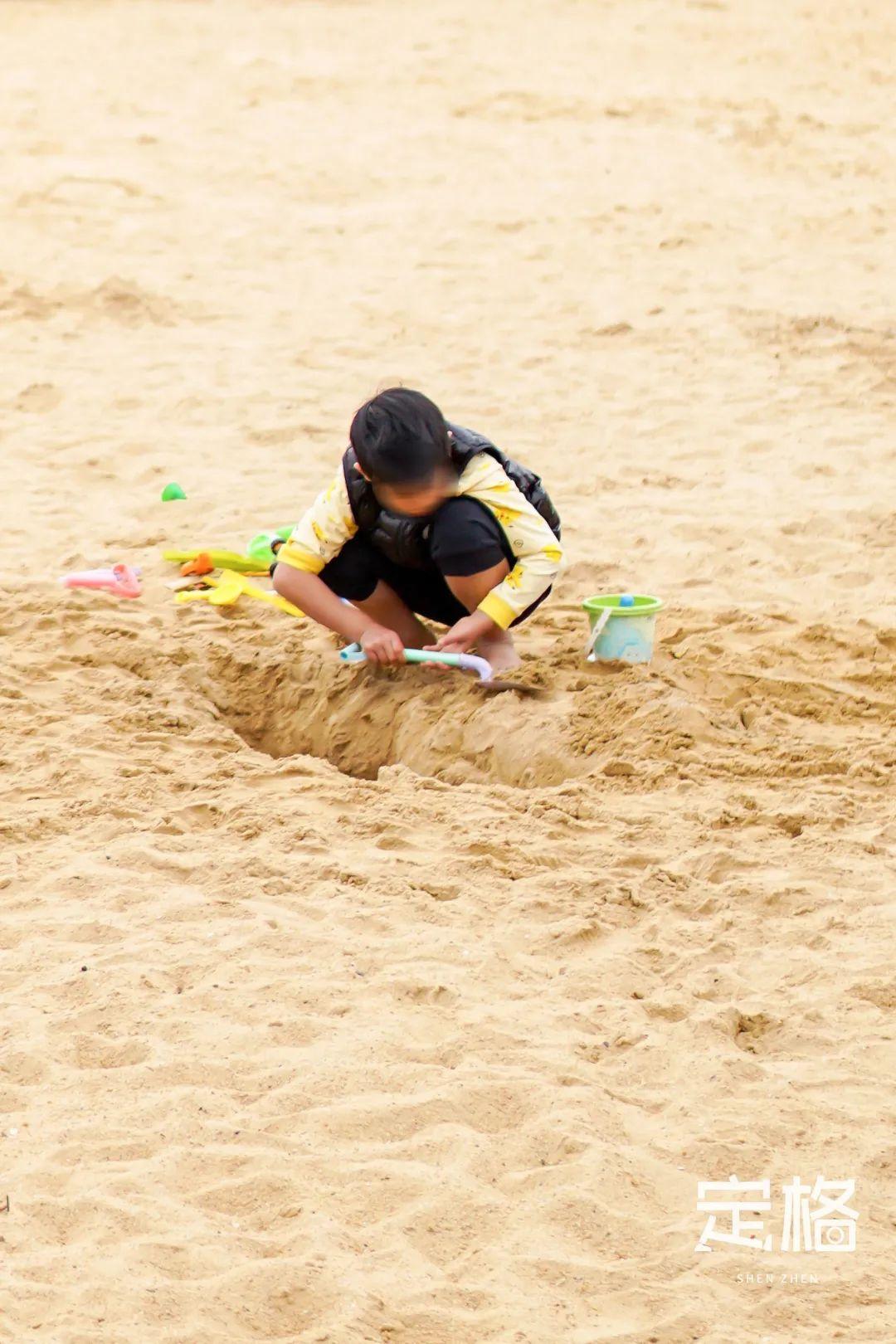 中心河提升工程一期靠近出海口处有一大片的阳光沙滩,有不少小朋友在这里挖沙,在深圳很难找到像这么大的沙池,很适合带小朋友来游玩。