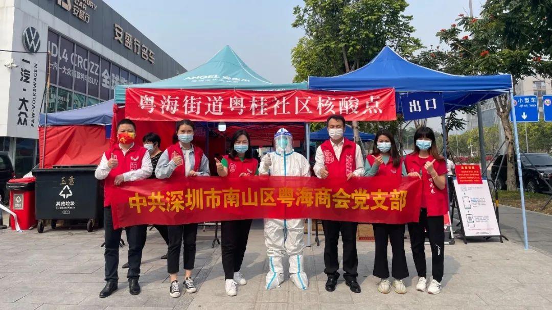 粤海商会秘书长刘腊梅带领商会支部成员及志愿服务队成员支援粤海街道创业路社区、粤桂社区、高新区社区核酸检测点。商会秘书处支援蛇口街道渔二社区、南头街道莲城社区,协助社区“扫楼”工作,积极引导群众做好核酸检测,协助社区参与人员排查、信息统计等工作。