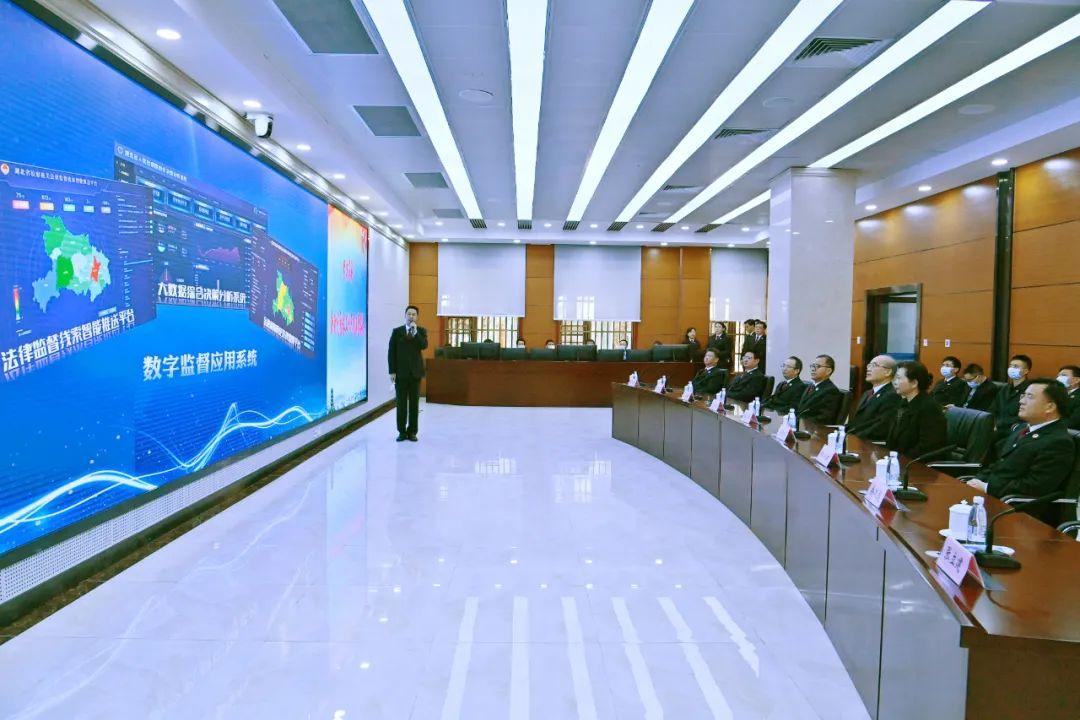 2021年12月2日,最高检党组书记、检察长张军率最高检调研组一行到湖北省检察院调研督导。在该院大数据研判指挥中心现场观摩了四个智能系统运行情况。