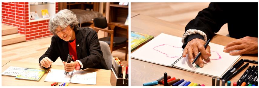 他热衷于开设工作坊,和孩子们一起画画,他认为孩子们的活力和有趣的思维,无法穷尽。