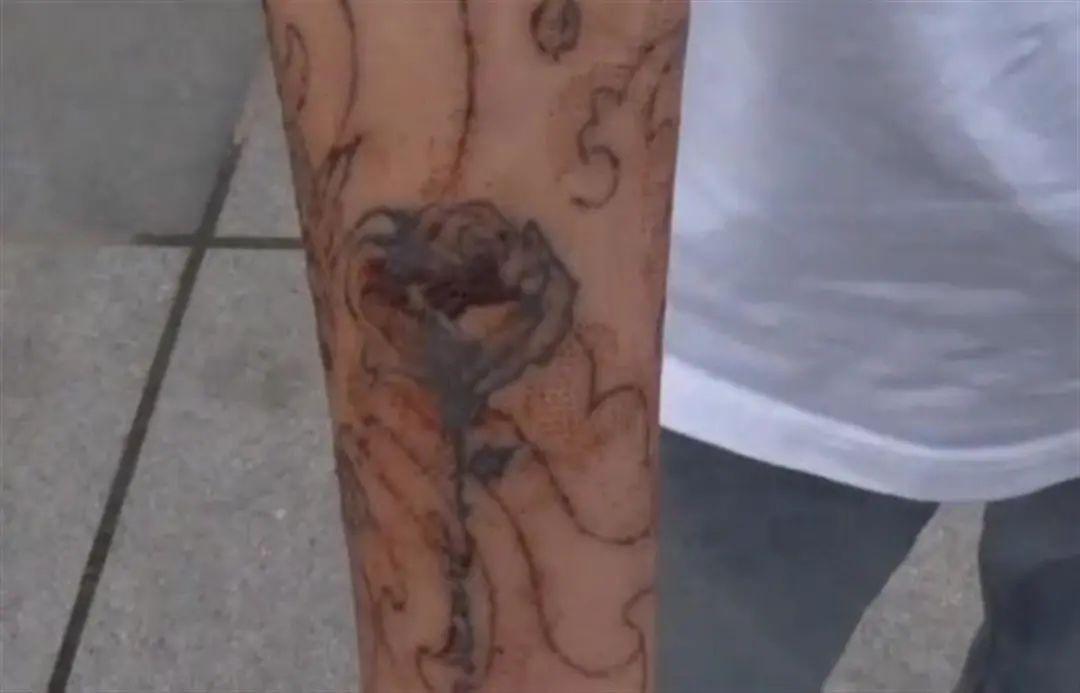 一个14岁女孩背着家人,花300元在文身店文了大片刺青,两个胳膊成了“花臂”。