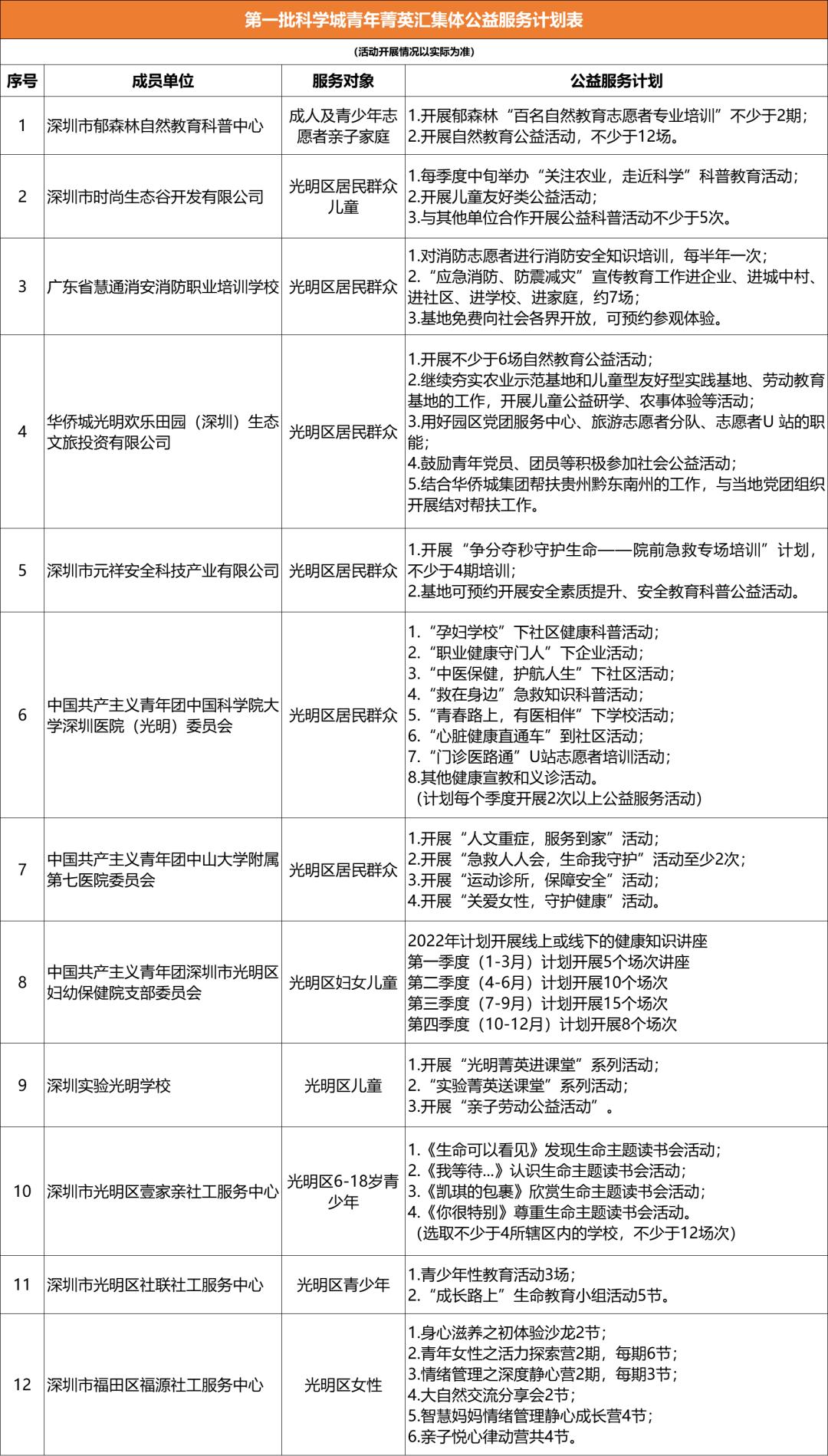 为落实县域共青团基层组织改革试点工作项目中“进一步创新团的基层组织形式,因地制宜建立团主导的青年组织”的工作要求,光明团区委已于2022年1月开展第一批科学城青年菁英汇申报工作。