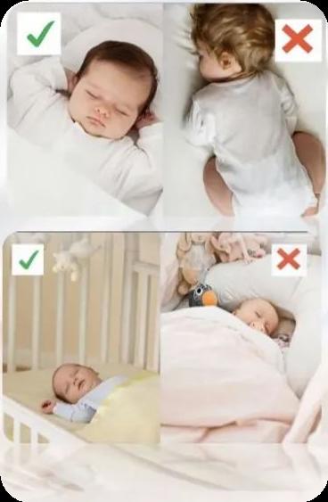 ✔不要遮盖头部、脸部、小婴儿不用枕头、