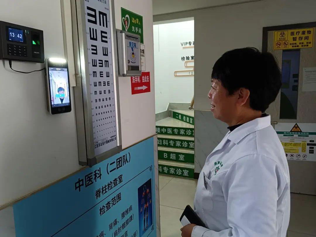 △ 医务人员正在打卡,打卡成功后打卡机显示医务人员姓名