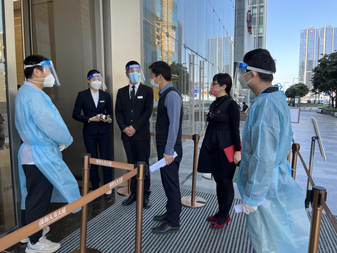 为保障桂湾片区商圈及写字楼安全,按照管理局建设工地联防联控及桂湾片区工作组要求,前海建投集团人力资源部根据工作实际及封控情况,按年轻、男性、党员优先等原则,紧急抽调50名员工参与桂湾片区防疫工作,逐户、逐楼进行扫码核查及配合核酸检测采样等工作。