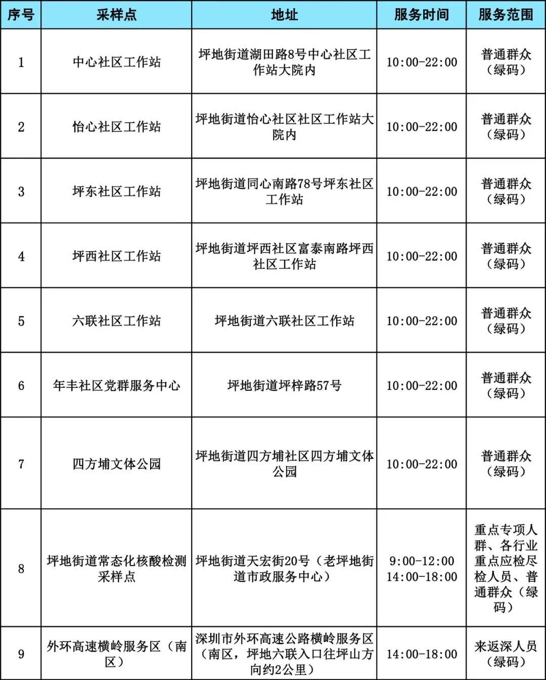 坪地街道设有10个核酸采样点