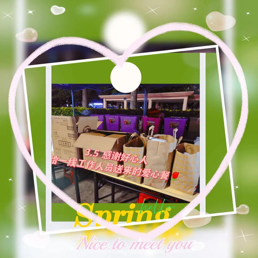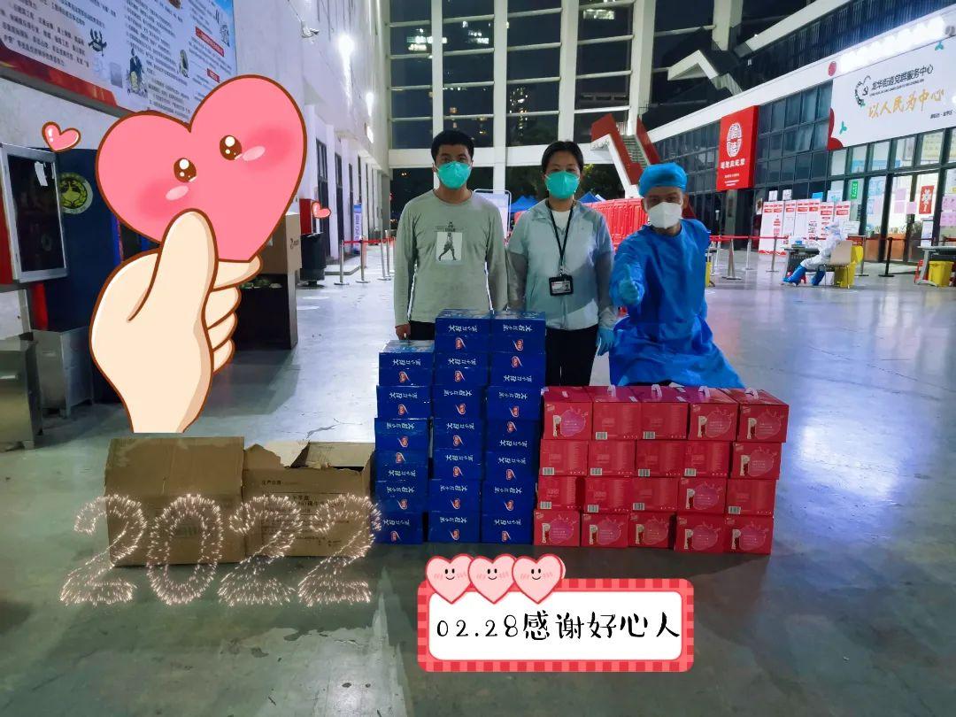 3月8日,龙华街道富康社区党委委员陈法斯表示,他所说的这位雷女士不曾露面,却先后给龙华文化广场核酸采样点的医护人员、志愿者、安保员等一线工作者,送了快餐、咖啡、矿泉水、牛奶等七批慰问物资。