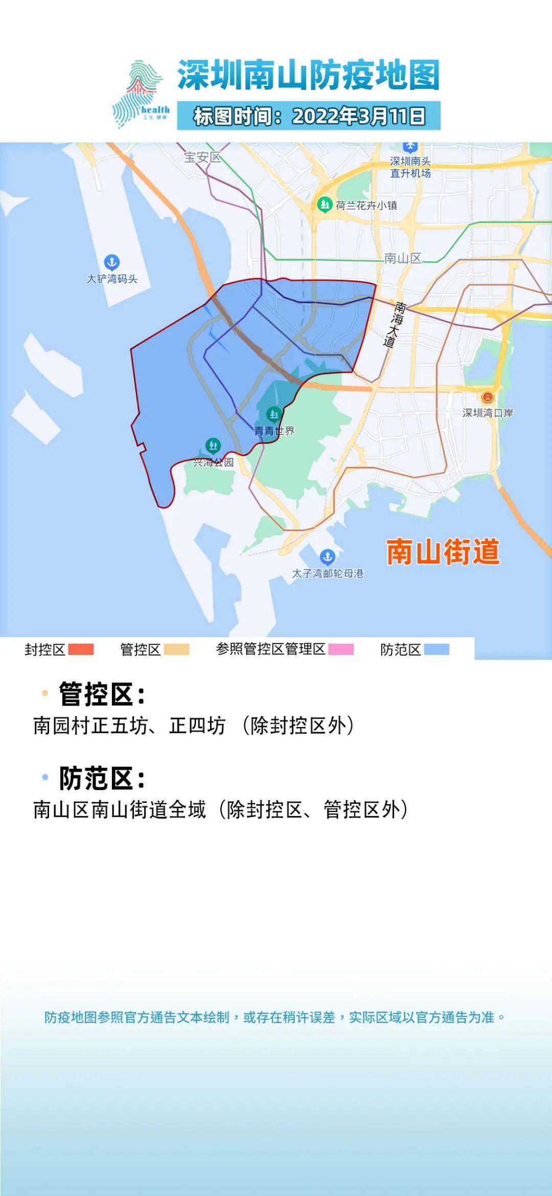 根据疫情防控工作需要,自2022年3月10日起,南山区在南山街道划定封控区、管控区和防范区。