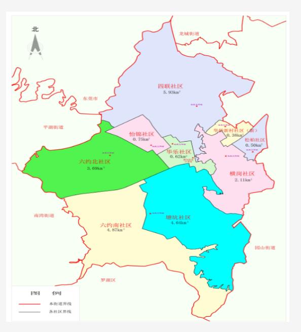横岗街道辖区面积23.5平方公里,下辖9个社区,其中农城化社区3个,城市化社区6个。管理服务人口35.2万。长期以来,辖区存在农城化社区和城市化社区之间社会管理服务规模失衡、管理服务难度相差悬殊、服务质量参差不齐、界线交错镶嵌、基层治理难以进一步深化等问题。其中,六约社区是全区111个社区中规模指数排名第一的社区,面积和人口均占街道一半以上,因此调整街道社区规模迫在眉睫。