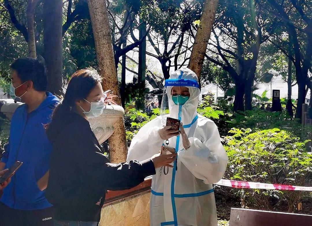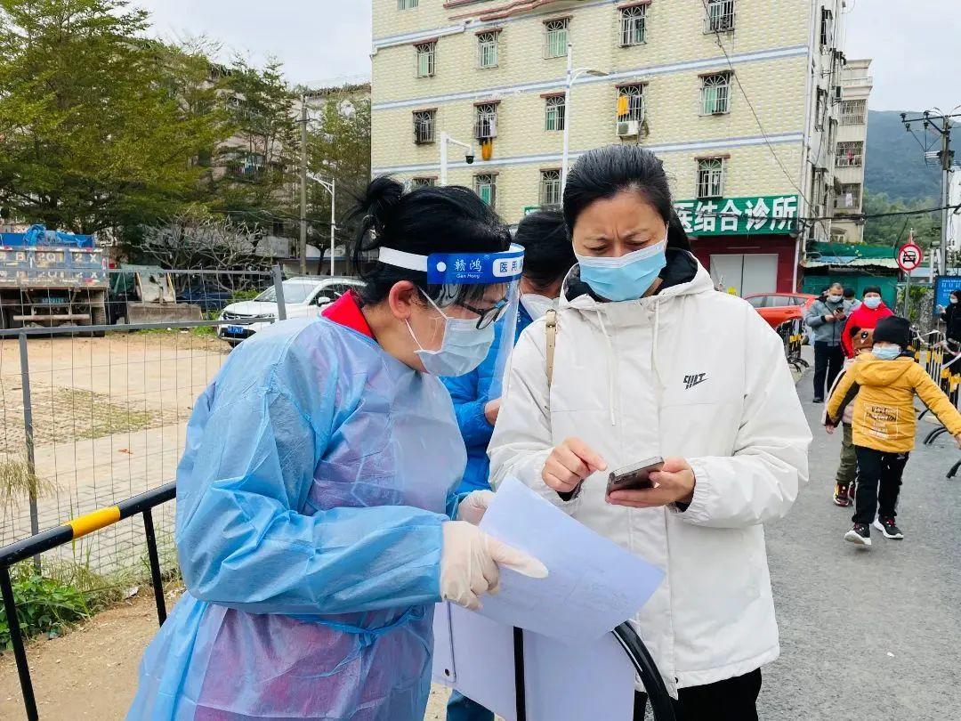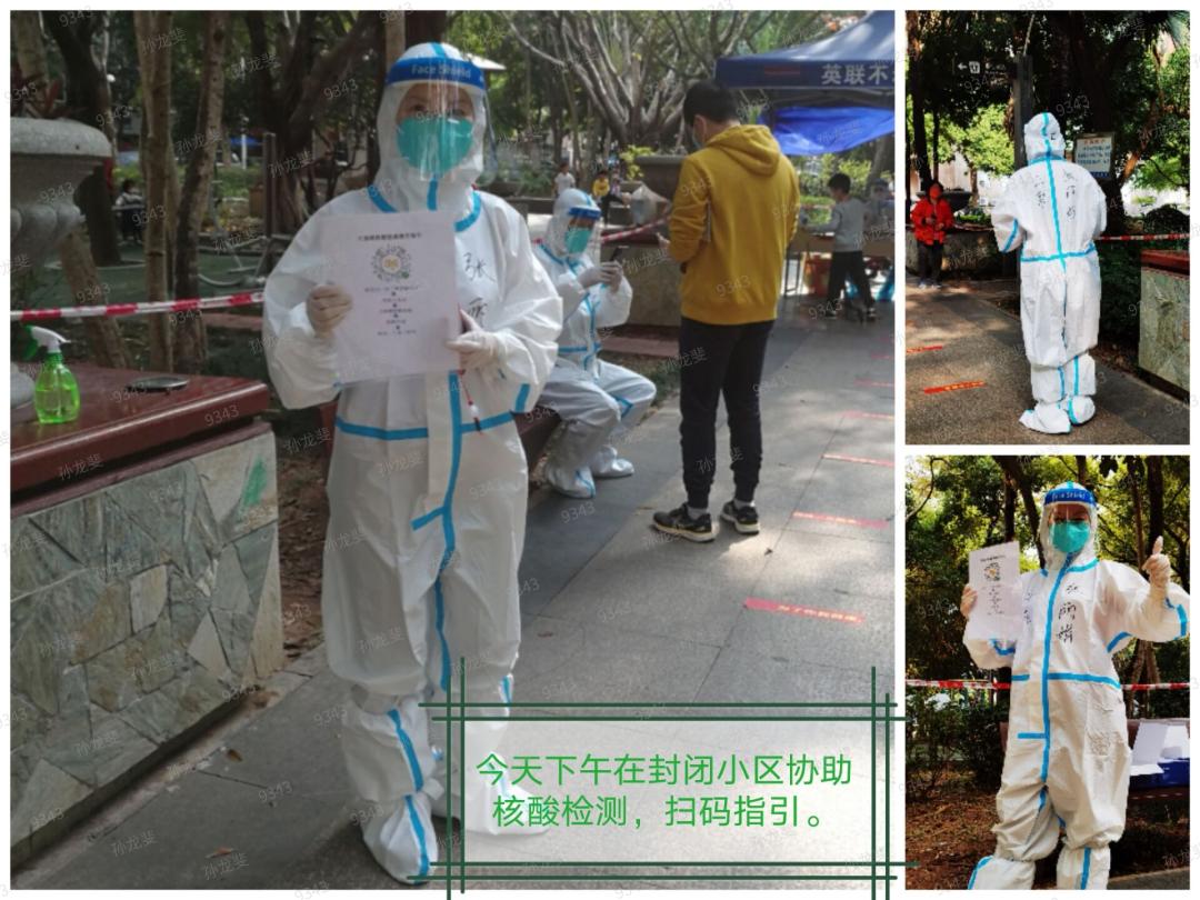 市总工会办公室党支部副书记丘岚第一时间到居住地香梅社区党委报到,积极参与社区一线疫情防控工作。按照香梅社区党委安排,丘岚主要负责协助医护人员扫码查验,引导居民群众有序进行核酸检测等相关工作。