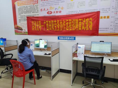 近日,一场2022年“春暖光明”深圳光明—广西田阳劳务协作远程视频招聘会,吸引了田阳区各乡镇的不少群众到田阳区老乡家园农事城办劳务协作服务站参加视频面试,通过线上视频的形式开展面对面、零距离交流,并与企业达成就业意向。
