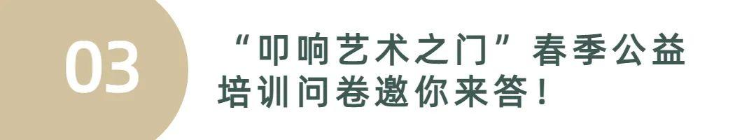 坪山文化馆“叩响艺术之门”公益培训课程是坪山文化馆的常设公益活动,开办一年以来深受广大坪山er的喜爱。2022年“叩响艺术之门”公益培训课程将持续开展,为了打造最适合市民的课程,现特别制作坪山文化馆“叩响艺术之门”公益艺术培训课程2022年调查问卷。此问卷为匿名填写,不会泄露隐私。