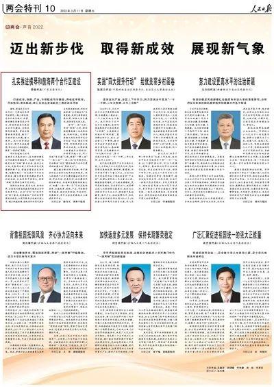 2022年3月11日,人民日报“两会·声音2022”专栏刊发全国人大代表、广东省委书记李希署名文章《扎实推进横琴和前海两个合作区建设》。全文如下: