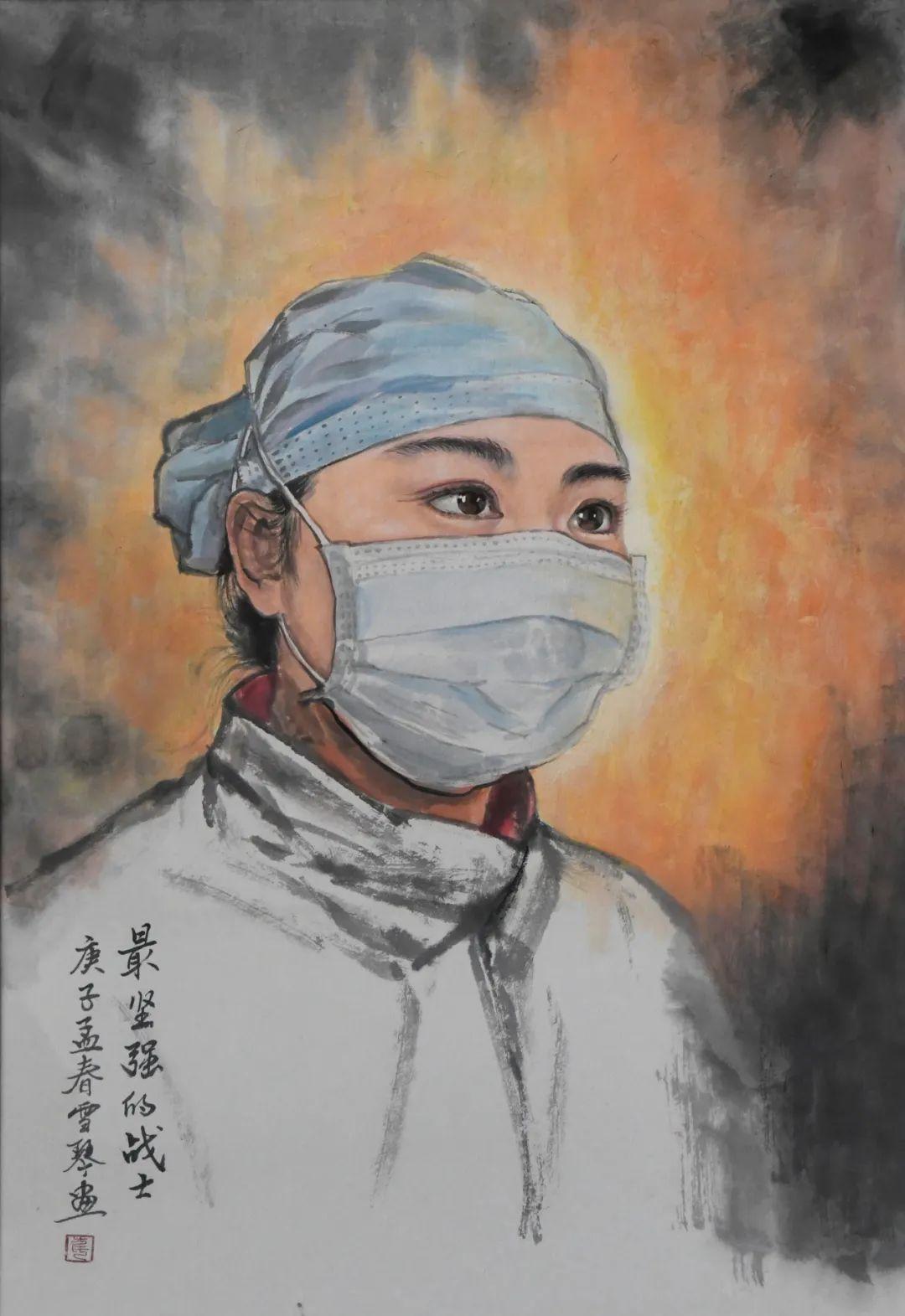 《最美逆行者》/ 吕琳清 / 96cm×60cm / 国画 / 2021年