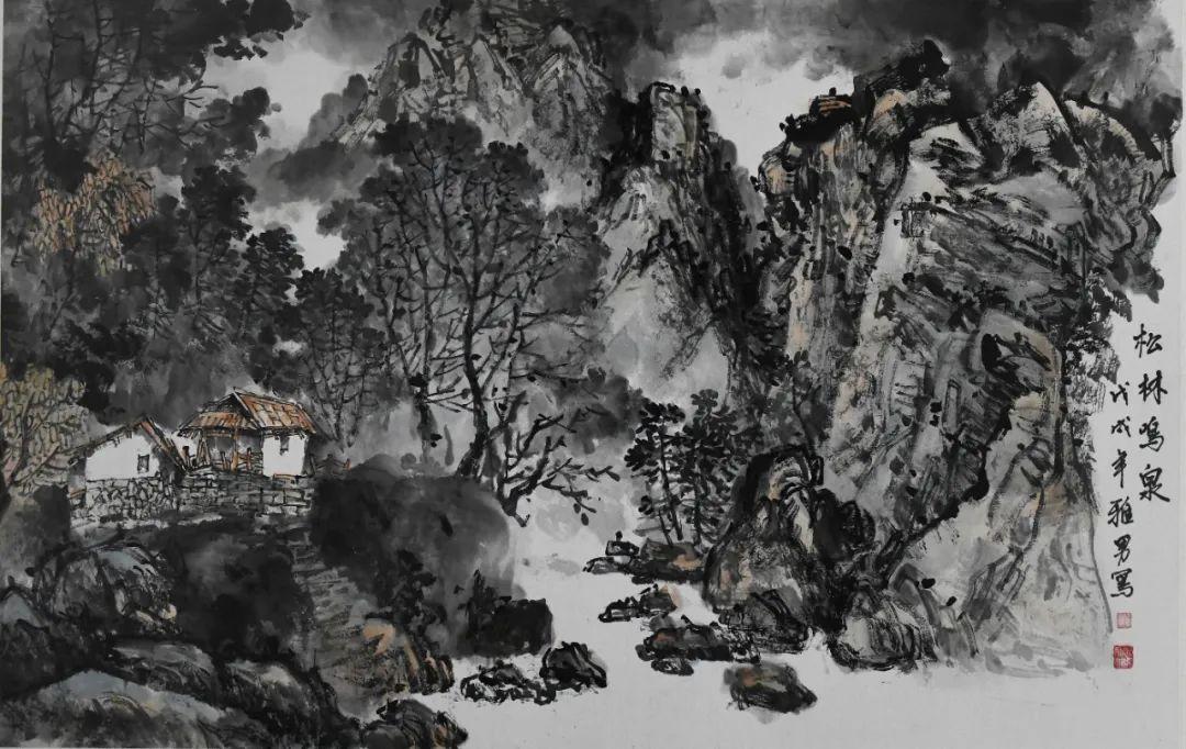 《松林鸣泉》/ 李雅男 / 118cm×69cm / 国画 / 2020年