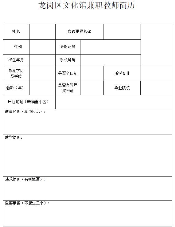 (1)应聘者请将“个人简历、学历学位证书”等材料发送至电子邮箱52564633@qq.com,邮件标题统一命名为“龙岗区文化馆兼职教师+应聘职位+个人姓名”。