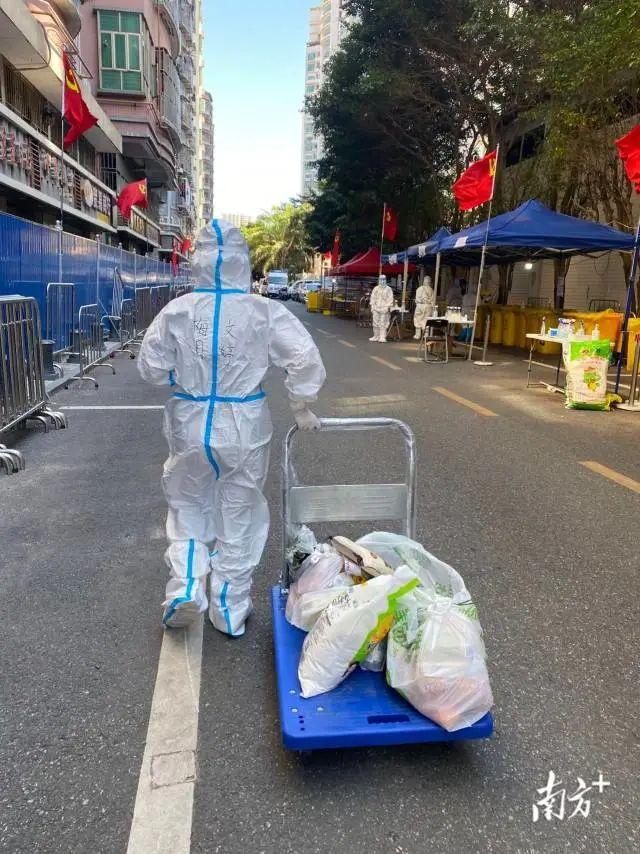 此时此刻,福田区实验教育集团梅园小学的9名教师志愿者仍坚守在上沙村封控区一线。封控区是离危险最近的地方,教师志愿者的任务也非常艰巨,包括“扫楼”核查居住信息、协助医护人员逐一上门进行核酸检测、为居民运送物资、帮居民丢生活垃圾等。“危险就在身边,但我们都很乐观,相信离解封越来越近了。”梅园小学教师志愿队带队的马霖主任说,他们队伍中有一部分老师原本可以撤离,但大家一致决定“既然来了就要坚守到最后。”