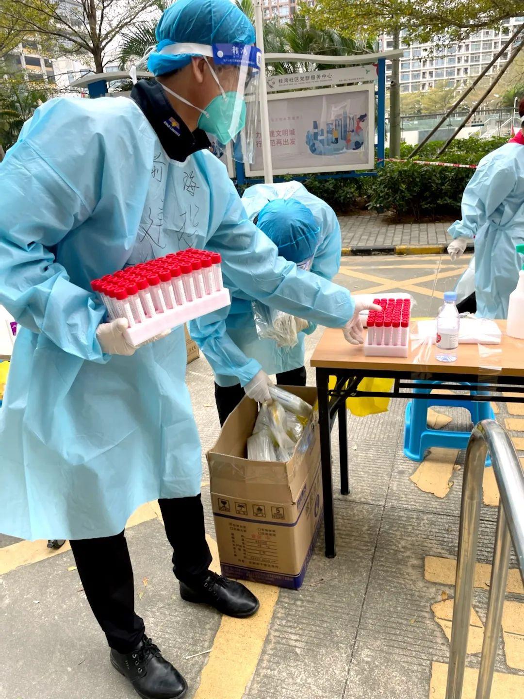 因桂湾社区工作人员不足,党总支通知集团安排3名同事担任楼栋小组长,持续协助社区工作。收到通知后,前期多轮参与志愿服务的朱斌、张传栋、刘方斌3人,再次站了出来,牵头统筹相关楼栋物资调配、核酸采样和扫楼等工作。